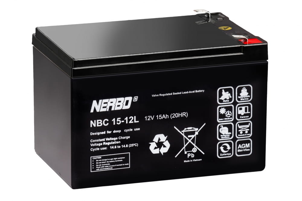 Seria NBC marki NERBO to szczelne i bezobsługowe akumulatory wykonane w technologii AGM, czyli elektrolitem uwięzionym w separatorach z włókna szklanego o dużej porowatości. Dla pracy buforowej projektowana żywotność wynosi do 12 lat. Charakteryzują się one wysoką odpornością na głębokie rozładowania oraz dużą żywotnością cykliczną w porównaniu do klasycznych modeli AGM, dzięki czemu doskonale sprawdzają się w aplikacjach cyklicznych, gwarantując ich długą oraz bezawaryjną pracę.